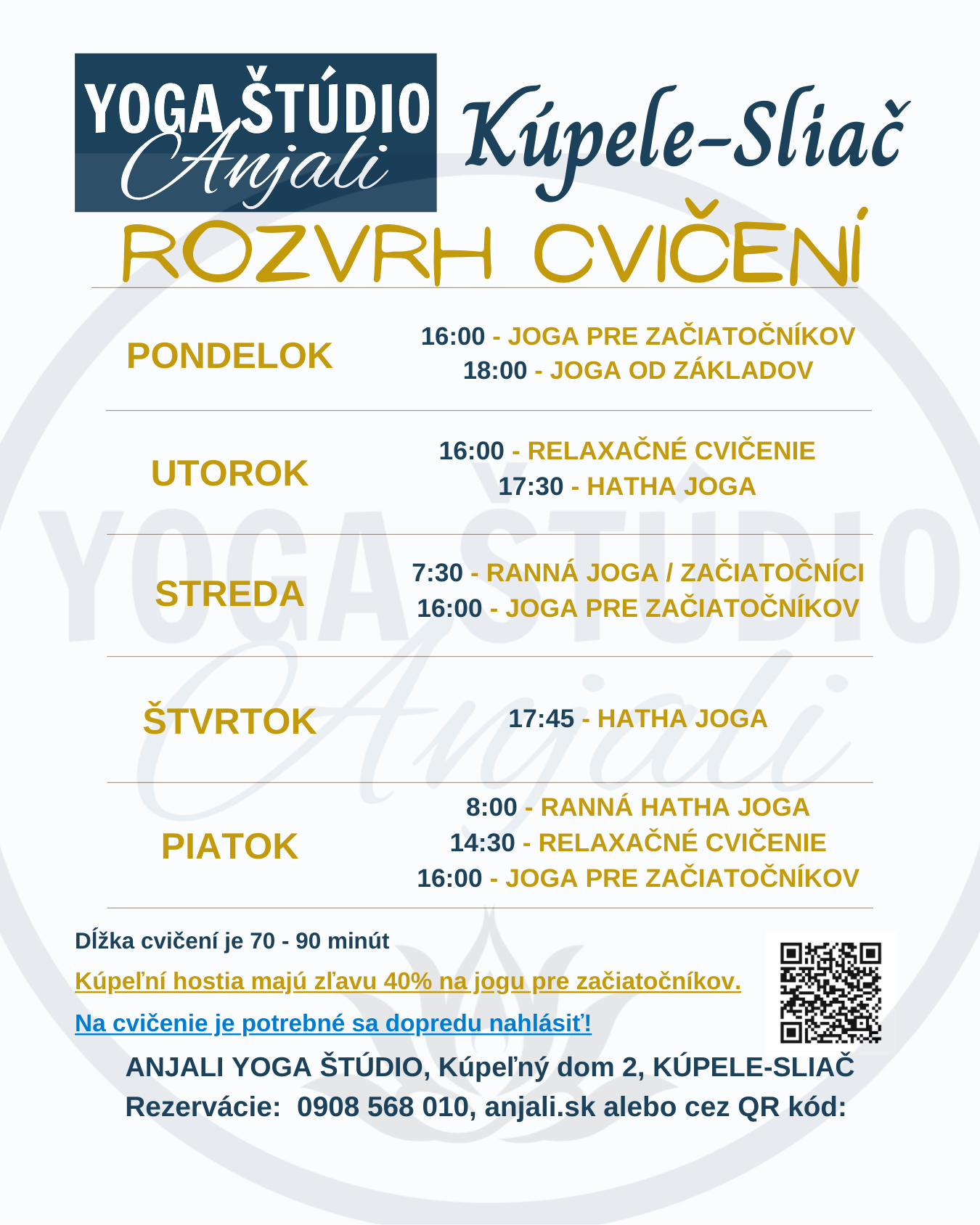 Aktuálny rozvrh cvičení jogy